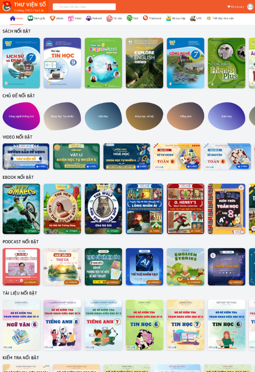 Ebook: Nhà trường cung cấp Ebook bộ sách giáo khoa, Ebook sách giáo viên mà trường đã chọn lựa và các Ebook học tiếng Anh bằng AI hay eBook tham khảo lên thư viện số để học sinh và giáo viên tham khảo khi không mang sách giấy bên cạnh.